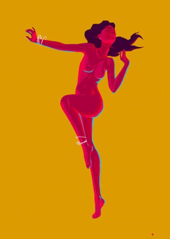 Illustrator Anton Marrast creates an appropriate but fun portrayal of self intimacy. This piece should click well with those who occasionally break out into a nude dance number when no one’s watching.